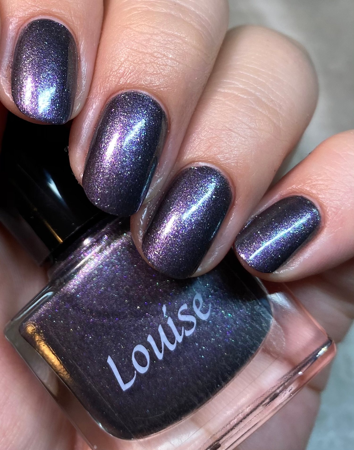 Make It Rein has a black base with tons of different shimmer and sparks that make the shifting qualities of this one very unique. The polish reads mostly purple, but you can see blue, green, pink, and grey at different angles. Opacity is achieved in 2-3 coats.